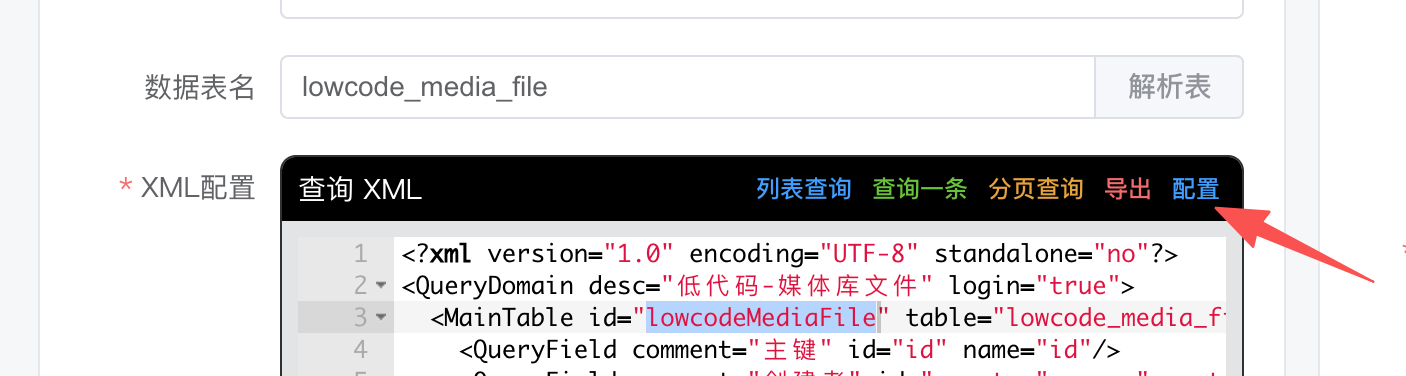 点击 配置 打开xml配置