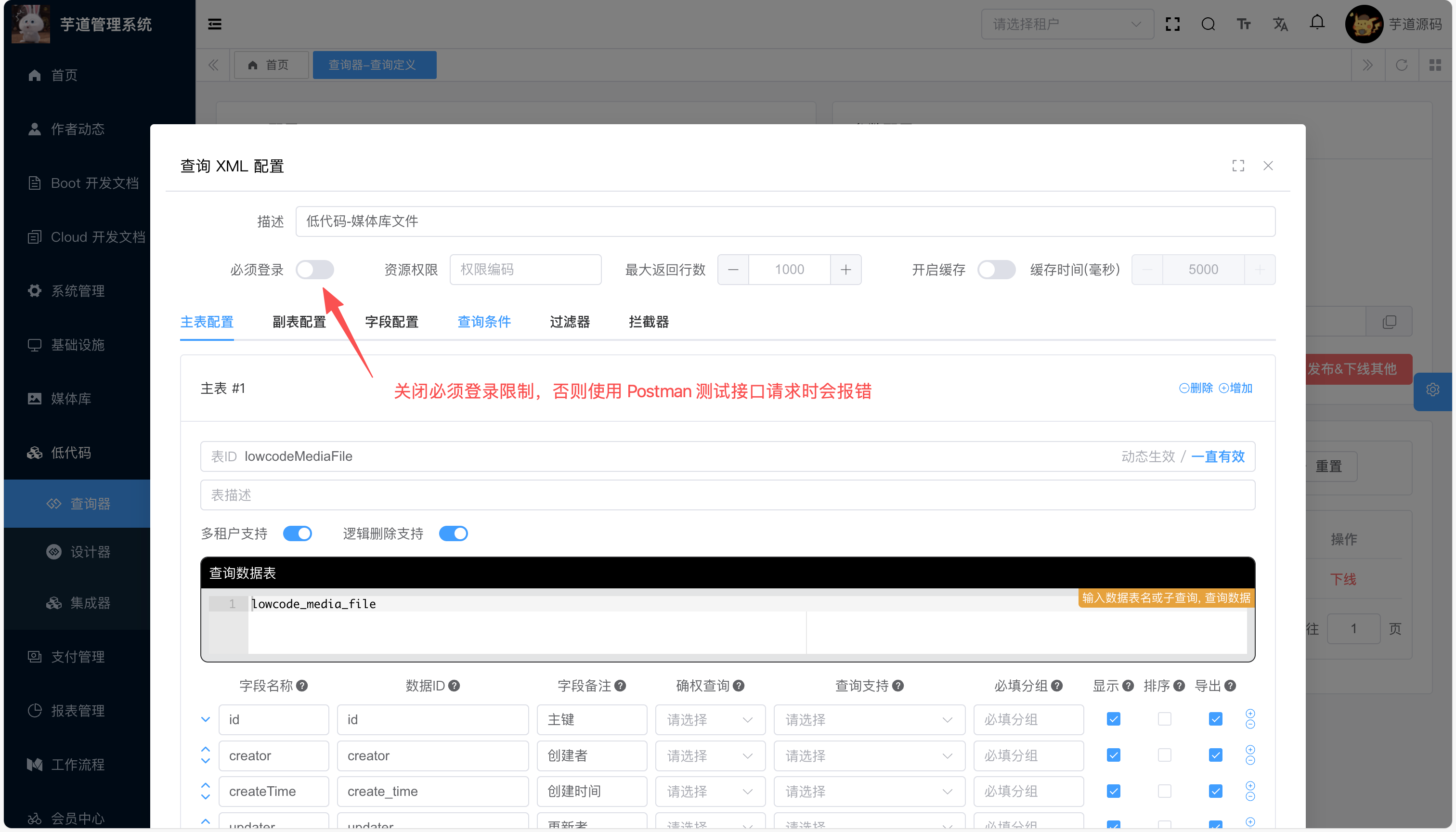 /app-api/lowcode/deploy-api/lowcodeMediaFileTest/export?apiCode=API00000901使用 Postman 测试请求