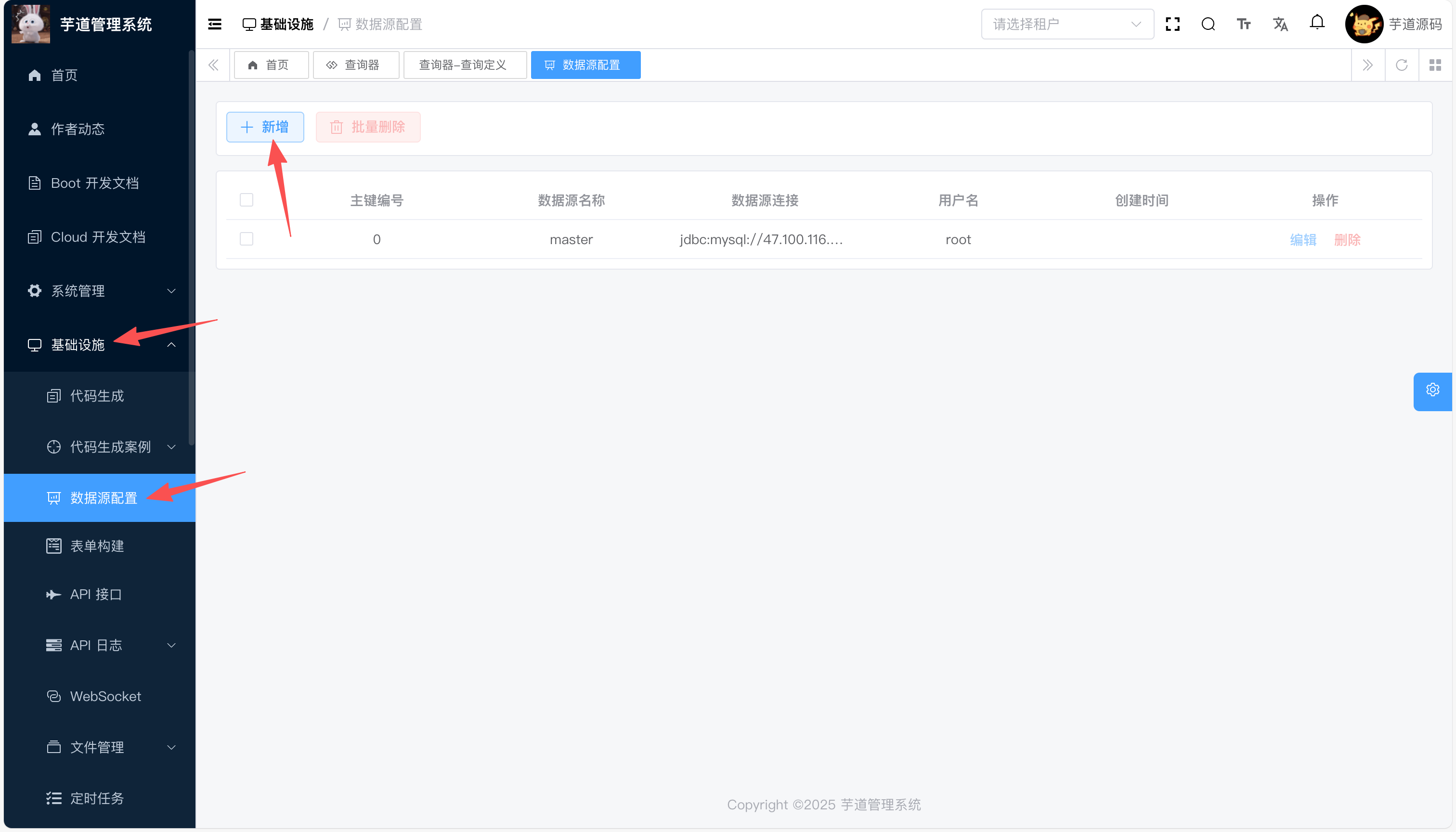 如果要查询的数据不在主数据源中,需在基础设置数据源配置中配置数据源信息