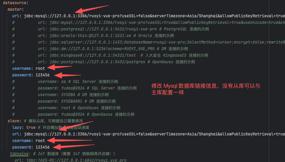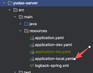 修改 yudao-server 模块下 application-local.yaml 文件中 Mysql 和 Redis 配置信息