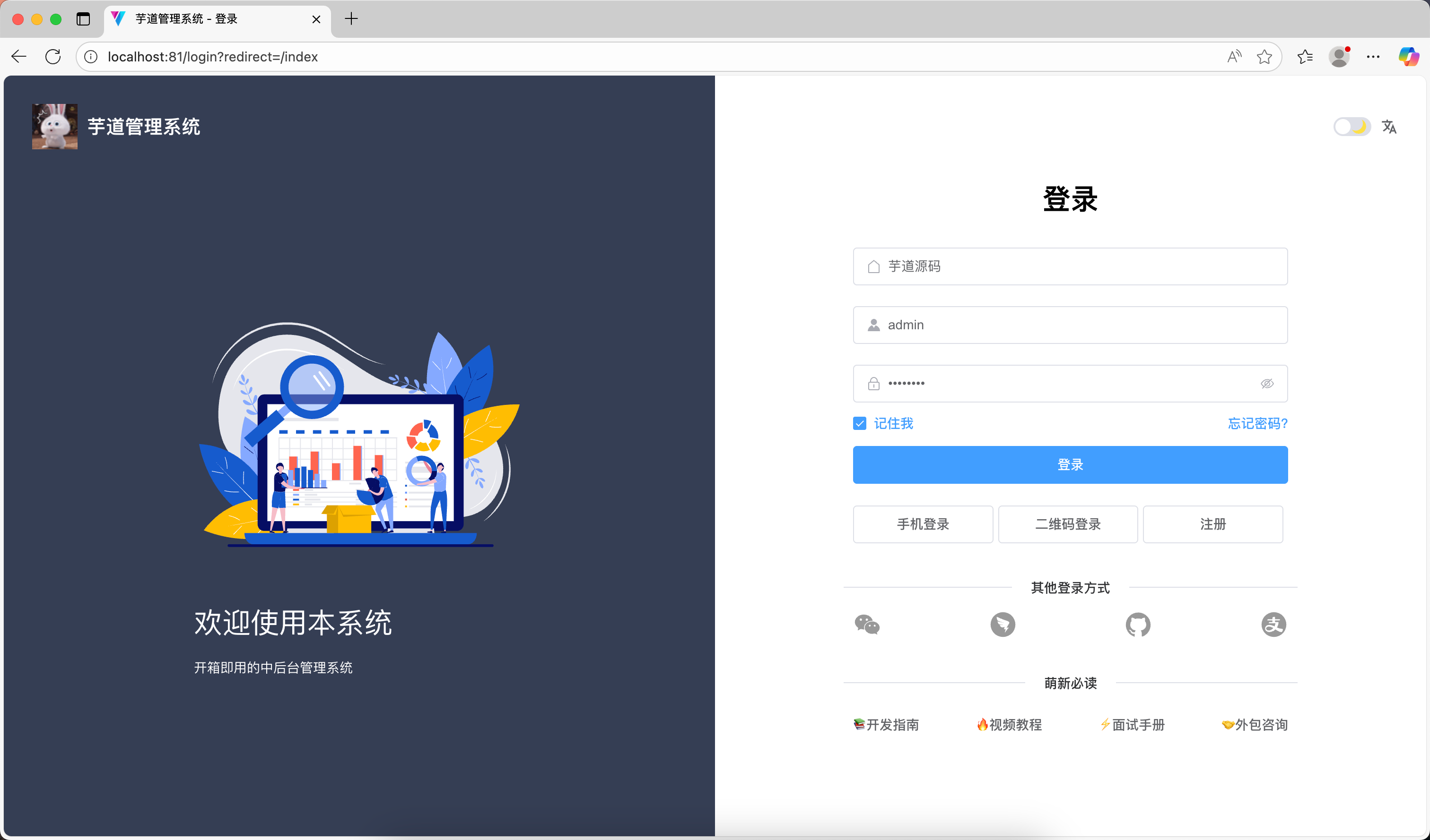 启动成功后会自动打开登录页面,直接登录即可